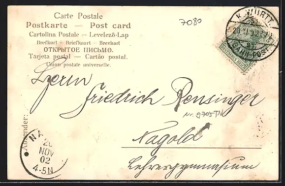 alte Ansichtskarte, gelaufen 1902, guter Zustand
