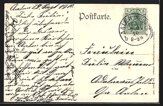 alte Ansichtskarte, gelaufen 1910, Eckknick re. unten, guter Zustand
