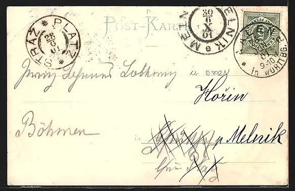 alte Ansichtskarte, gelaufen 1901, Stempelspur, guter Zustand