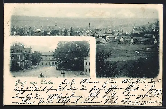 AK Aalen, Teilansicht mit Kirche, Denkmal