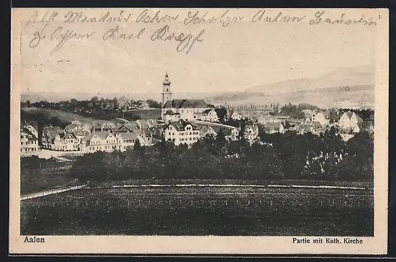 AK Aalen, Teilansicht mit Kirche und Fernblick