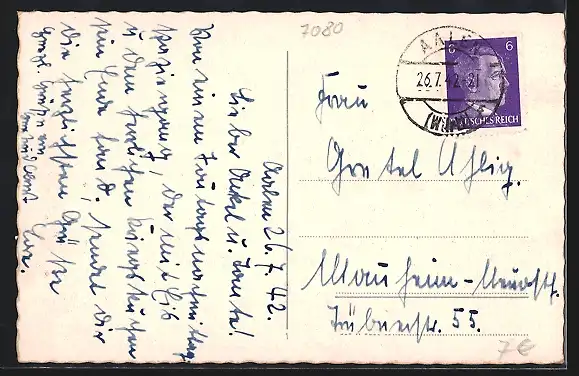 gelaufen 1942, Eckknick unten li., guter Zustand