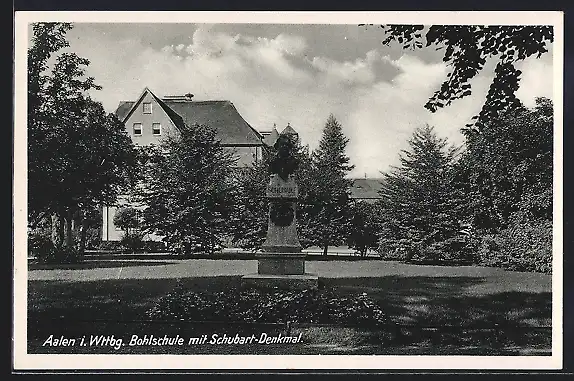 AK Aalen i. Wttbg., Bohlschule mit Schubart-Denkmal