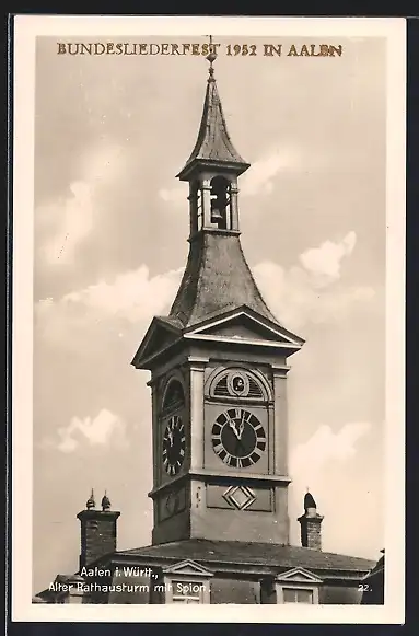 AK Aalen i. Württ., alter Rathausturm mit Spion
