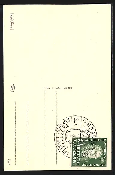 alte Ansichtskarte, ungelaufen, gestempelt 1952, guter Zustand