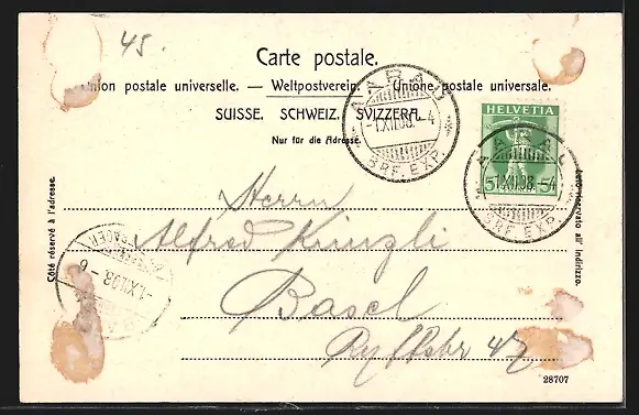 gelaufen 1908, rückseitig Klebe- und Papierreste, rückseitig Oberflächenschaden, guter Zustand