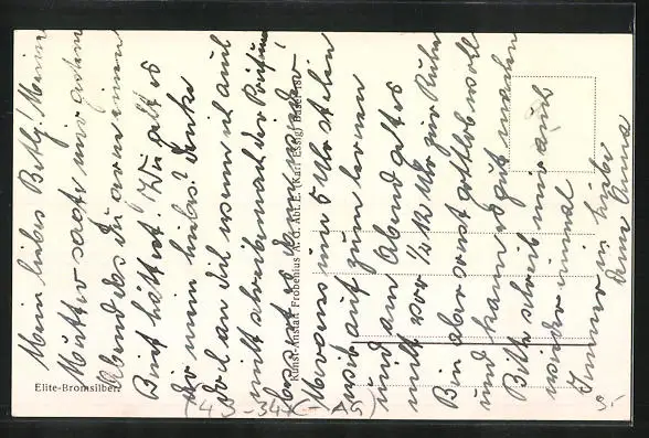 Personenbezogene Daten auf der Rückseite der Karte wurden durch blauen Textmarker unkenntlich gemacht. Die blauen Stellen sind auf die Vorderseite durchgeweicht und wirken sich negativ auf das Postkartenfoto aus