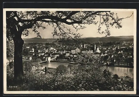 AK Aarau, Ortsansicht mit Flusspartie und Brücke
