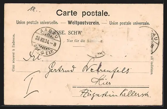 gelaufen 1904, Briefmarke entfernt, rückseitig Oberflächenschaden, guter Zustand