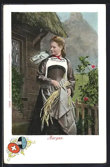 AK Aargau, Frau in Tracht mit Taube auf der Schulter