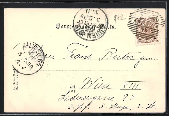alte Ansichtskarte, gelaufen 1899, Stempelspur, guter Zustand