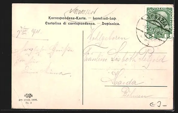 alte Ansichtskarte, gelaufen 1911, guter Zustand