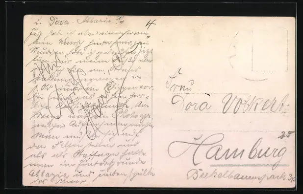 alte Ansichtskarte, gelaufen, Briefmarke entfernt, rückseitig Oberflächenschaden, Eckknick re. oben, Oberflächenschaden, guter Zustand