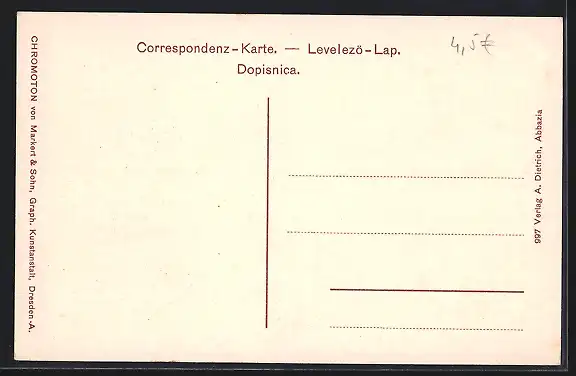 Personenbezogene Daten auf der Rückseite der Karte wurden durch blauen Textmarker unkenntlich gemacht. Die blauen Stellen sind auf die Vorderseite durchgeweicht und wirken sich negativ auf das Postkartenfoto aus