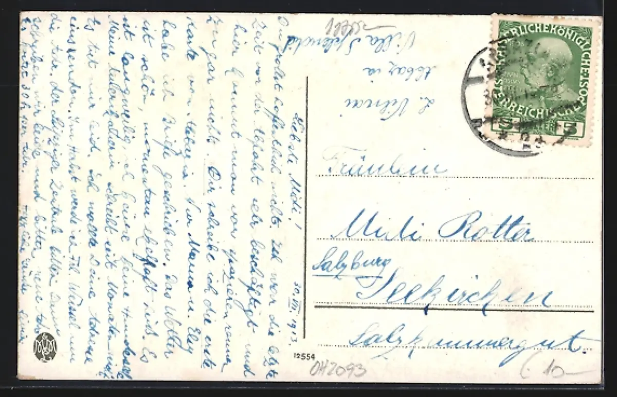 alte Ansichtskarte, gelaufen 1913, Abriebspur li. oben, guter Zustand