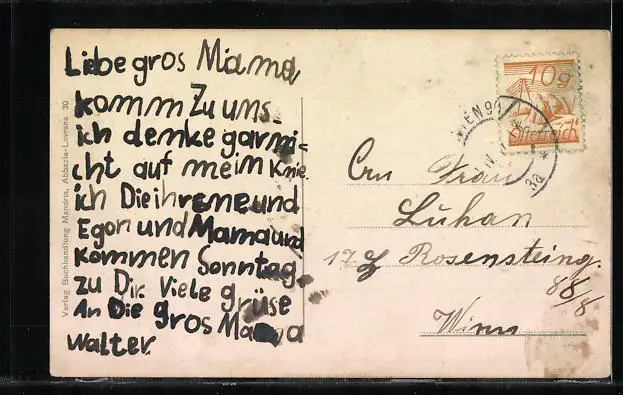 alte Ansichtskarte, gelaufen, rückseitig Klebe- und Papierreste, guter Zustand