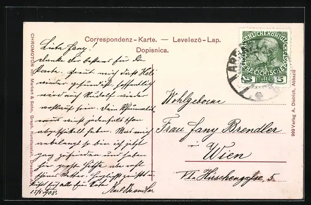 alte Ansichtskarte, gelaufen 1908, guter Zustand