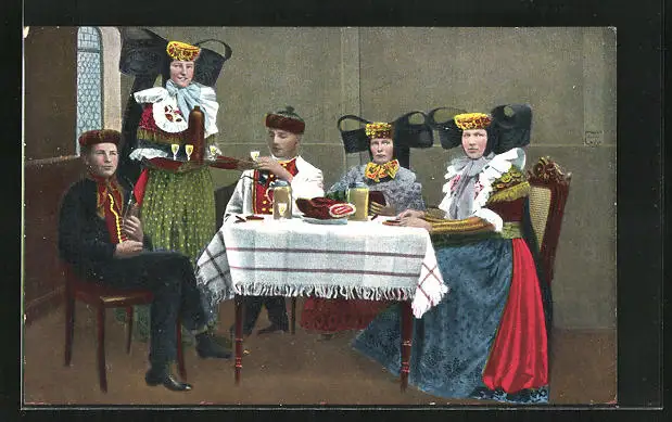 AK Abendbrot in Schaumburg-Lippischer Tracht