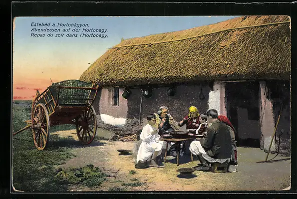 AK Abendessen auf der Hortobágy, ungarische Tracht