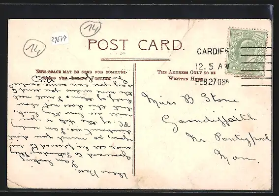 alte Ansichtskarte, gelaufen 1908, Eckknicke li. und unten re., Bugspur oben li., guter Zustand
