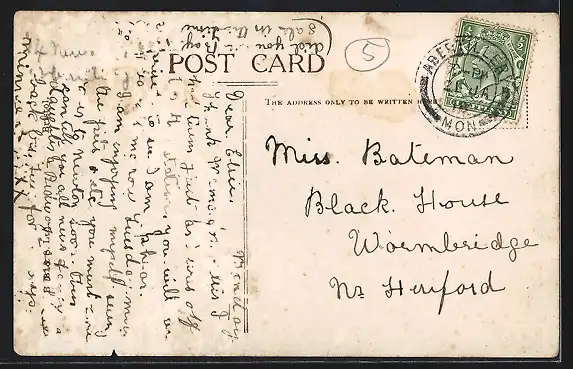 alte Ansichtskarte, gelaufen, rückseitig Oberflächenschaden, Bugspur li. unten, Einriss unten re., guter Zustand