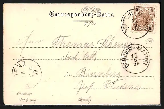 alte Ansichtskarte, gelaufen 1898, Stempelspur, Eckknick unten li., guter Zustand