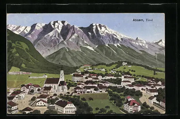 AK Absam /Tirol, Häuser aus der Vogelschau mit Berglandschaft