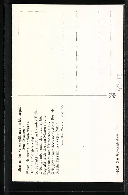 AK Abschied des Schwarzwäldlers vom Muttergrab