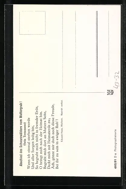 AK Abschied des Schwarzwäldlers vom Muttergrab