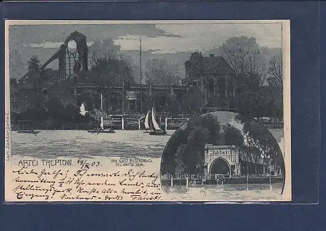 AK Abtei Treptow Inh. Gust.Busekow & Co. 2.Ansichten, gelaufen von 1903
