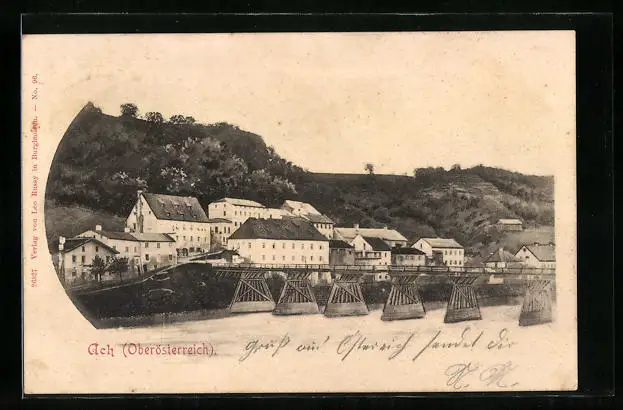 AK Ach an der Salzach, Ortsansicht über den Fluss
