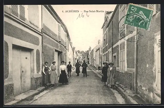 AK Achères, Rue Saint-Martin, Strassenpartie