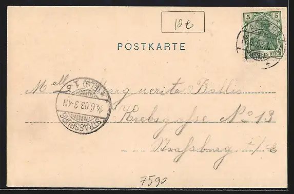 alte Ansichtskarte, gelaufen 1903, Eckknick re. unten, guter Zustand