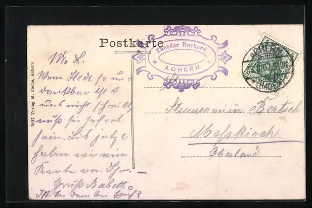 alte Ansichtskarte, gelaufen 1907, Kantenschaden re., guter Zustand