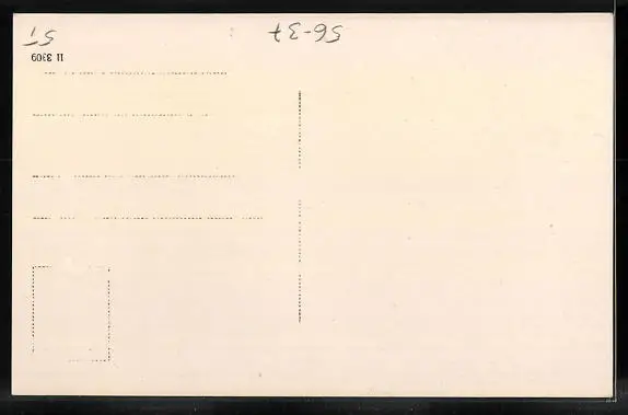 Personenbezogene Daten auf der Rückseite der Karte wurden durch blauen Textmarker unkenntlich gemacht. Die blauen Stellen sind auf die Vorderseite durchgeweicht und wirken sich negativ auf das Postkartenfoto aus