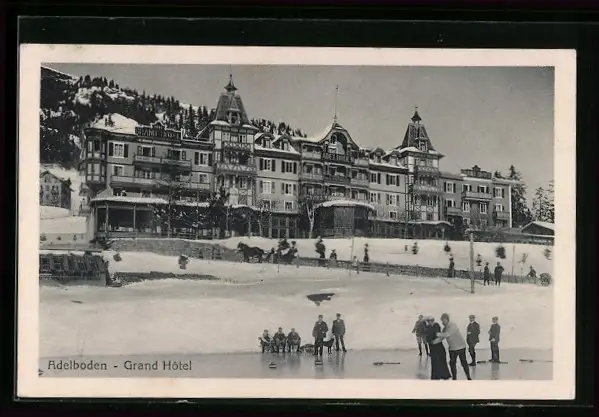 AK Adelboden, Grand Hotel mit Wintersportlern