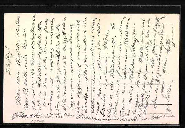 Personenbezogene Daten auf der Rückseite der Karte wurden durch blauen Textmarker unkenntlich gemacht. Die blauen Stellen sind auf die Vorderseite durchgeweicht und wirken sich negativ auf das Postkartenfoto aus
