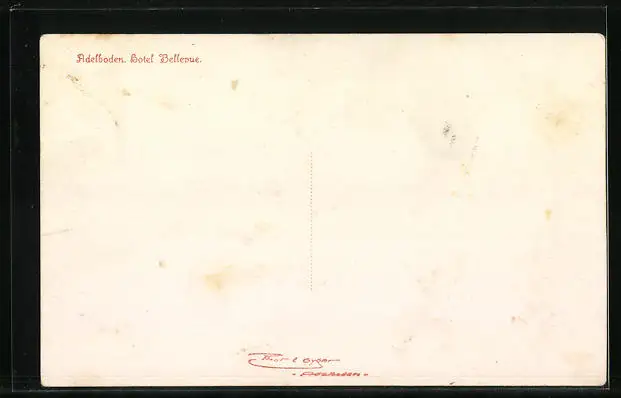 Personenbezogene Daten auf der Rückseite der Karte wurden durch blauen Textmarker unkenntlich gemacht. Die blauen Stellen sind auf die Vorderseite durchgeweicht und wirken sich negativ auf das Postkartenfoto aus