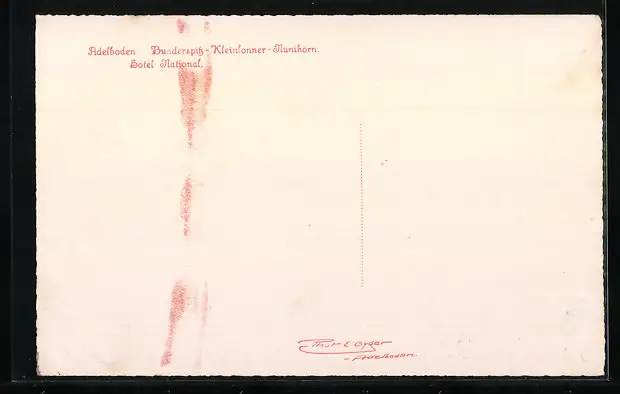 Personenbezogene Daten auf der Rückseite der Karte wurden durch blauen Textmarker unkenntlich gemacht. Die blauen Stellen sind auf die Vorderseite durchgeweicht und wirken sich negativ auf das Postkartenfoto aus
