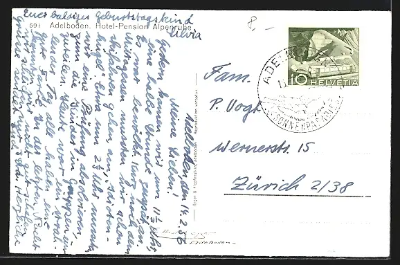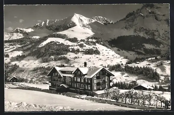 AK Adelboden, Hotel-Pension Alpenruhe im Schnee