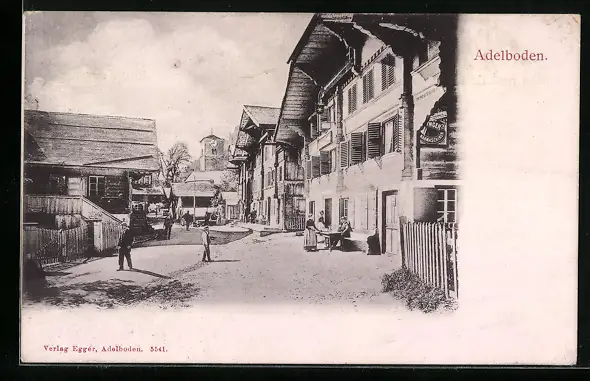 AK Adelboden, Strassenpartie mit Anwohnern