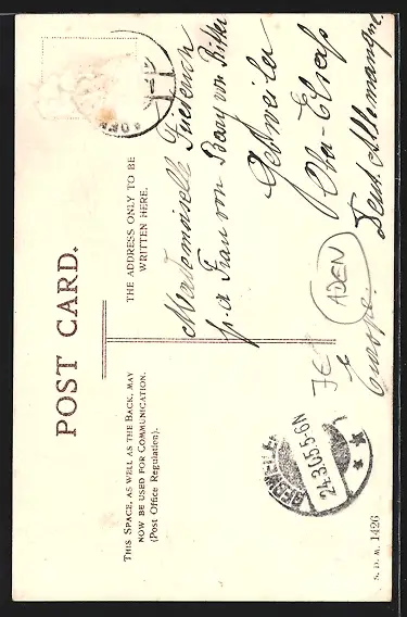 alte Ansichtskarte, gelaufen 1905, Briefmarke entfernt, rückseitig Oberflächenschaden, guter Zustand