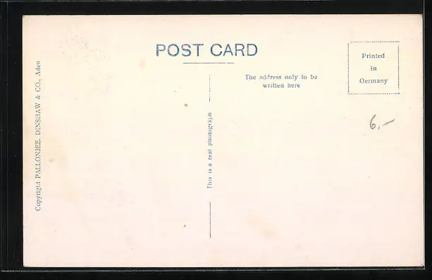Personenbezogene Daten auf der Rückseite der Karte wurden durch blauen Textmarker unkenntlich gemacht. Die blauen Stellen sind auf die Vorderseite durchgeweicht und wirken sich negativ auf das Postkartenfoto aus
