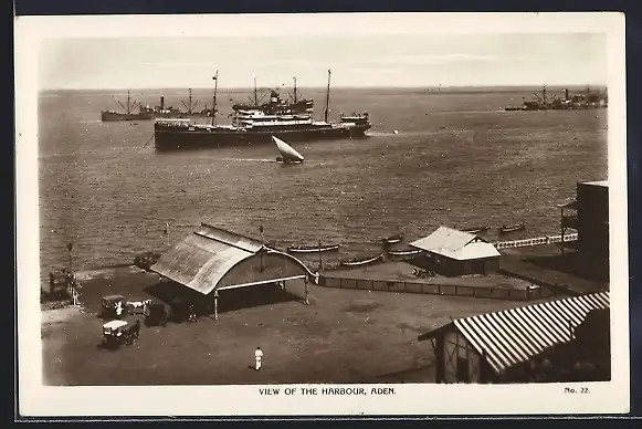 AK Aden, View of the Harbour, Hafen mit Dampfern