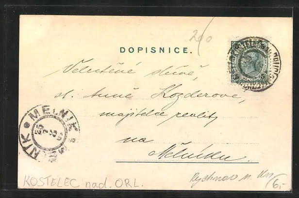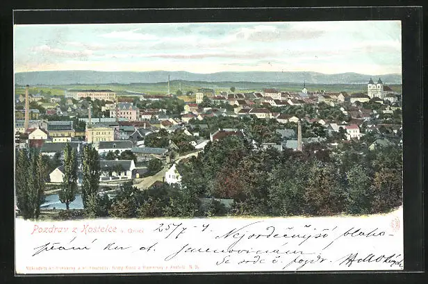 AK Adler Kosteletz / Kostelec nad Orlici, Ortsansicht aus der Vogelschau