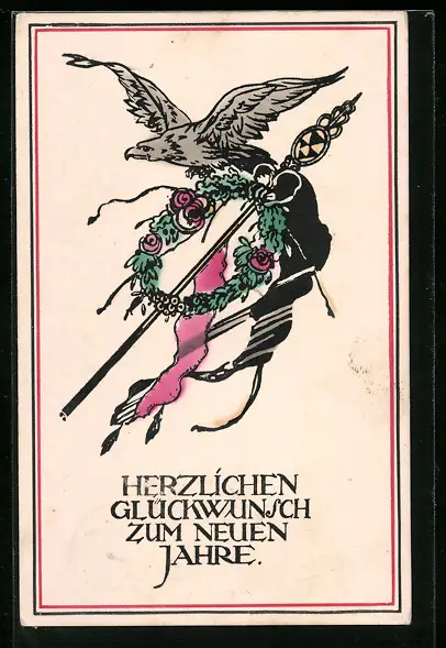 AK Adler mit Eichenkranz, Neujahrsgruss