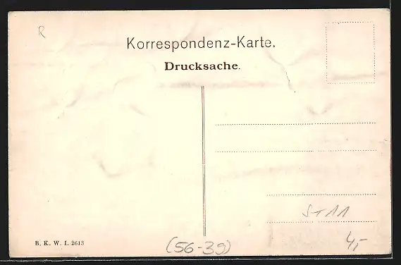 Personenbezogene Daten auf der Rückseite der Karte wurden durch blauen Textmarker unkenntlich gemacht. Die blauen Stellen sind auf die Vorderseite durchgeweicht und wirken sich negativ auf das Postkartenfoto aus