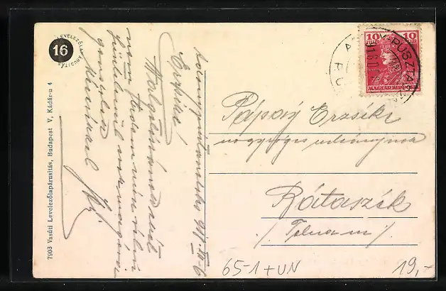 Personenbezogene Daten auf der Rückseite der Karte wurden durch blauen Textmarker unkenntlich gemacht. Die blauen Stellen sind auf die Vorderseite durchgeweicht und wirken sich negativ auf das Postkartenfoto aus