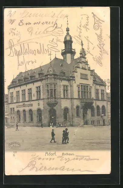 AK Adorf, Kinder auf dem Platz vor dem Rathaus