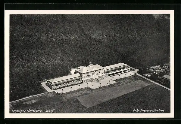 AK Adorf i. V., Leipziger Heilstätte vom Flugzeug aus